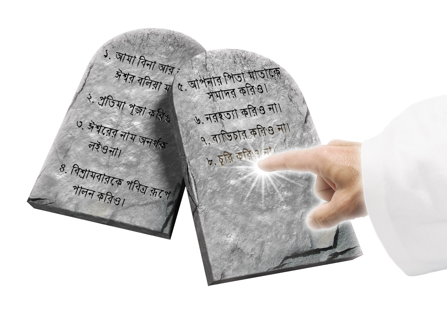 উত্তর: হ্যাঁ! স্বর্গের ঈশ্বর তাঁর নিজের আঙ্গুল দিয়ে দশটি আজ্ঞা প্রস্তর ফলকে লিপিবদ্ধ করেছিলেন।